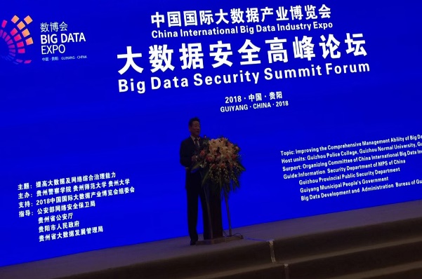 2018年5月25日上午,2018中国国际大数据产业博览会大数据安全高峰论坛在贵阳举行。此次论坛由2018中国国际大数据产业博览会组委会支持,贵州警察学院、贵州师范大学、贵州大学主办,公安部网络安全保卫局、贵州省公安厅、贵阳市人民政府、贵州省大数据发展管理局指导,主题为提高大数据及网络综合治理能力。中国保密协会隐私保护专委会副主任孟小峰,以保障国家网络安全”“我国大数据隐私现状分析与发展趋势”“提升贵州政府治理体系数字化与保障大数据安全”作了主题演讲。来自公安部、民航公安局、北京工业大学、中国科学院的特邀嘉宾,各省、市、自治区公安机关的同志,华为、阿里、360、腾讯、贵州东冠等省内外企业的领导参加了论坛。