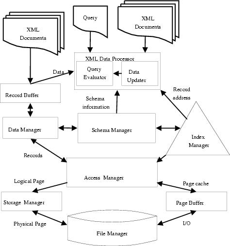 In our storage prototype, the elements are stored as variable length records. Each record has its parent record's or neighbor sibling record's pointer. The records may change their address because of increase or decrease contents during update operations, thus leads to the changes of the pointer.In order to decrease the modification of the pointers we introduce the oid(object id). Each element has a unique id.We use the oid table to store the oid and its corresponding storage address. In the system the record stores its parent and children oid as the pointer rather than their storage address. Therefore if the storage address of one record is changed due to update, we just to update the oid table. [more]